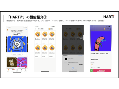 事業内容:完全審査制NFTアプリ「HARTi」の開発・運営ならびに、法人向けNFTコンサルティング事業「HARTi for Business」の2事業を主軸に事業展開。「HARTi」は国内の百貨店や商業施設内に出店中のリアル店舗「HARTi Gallery」と連携しており、展示中のNFT作品がアプリ上で簡単に購入可能。法人向けのNFTコンサルティング事業では、単なるIPのNFT化だけでなく、Web3文脈の形成や、マーケット・チェーンの選定支援など、クリプトネイティブに届けるプロジェクトの創出を一気通貫にサポートしている。