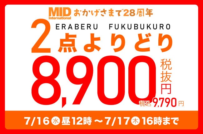 大きいサイズの専門店ミッド・インターナショナルが「28時間限定!対象商品2点よりどり税込9,790円」を開催