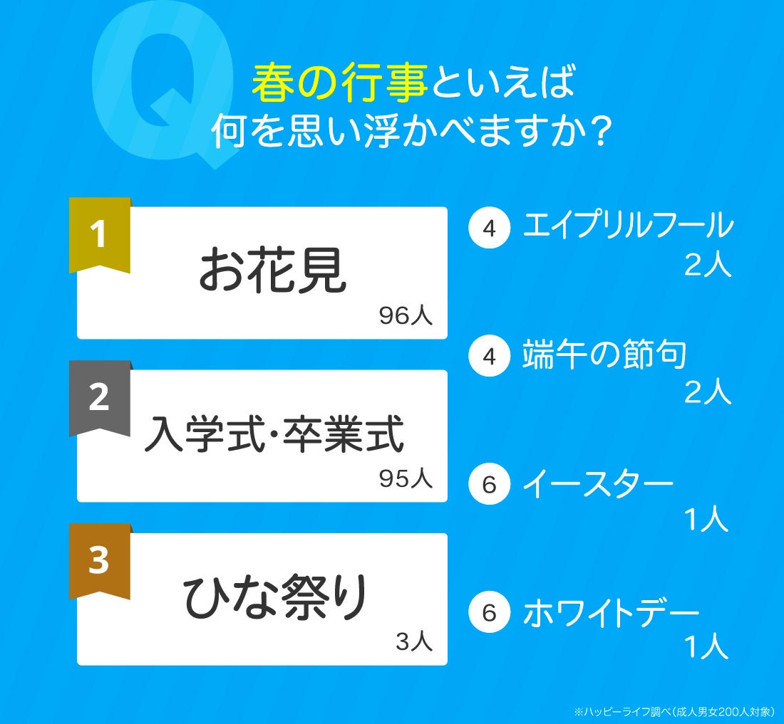 「春の行事といえば何を思い浮かべますか?」と聞いたところ、1位〜3位は以下のような結果となりました。