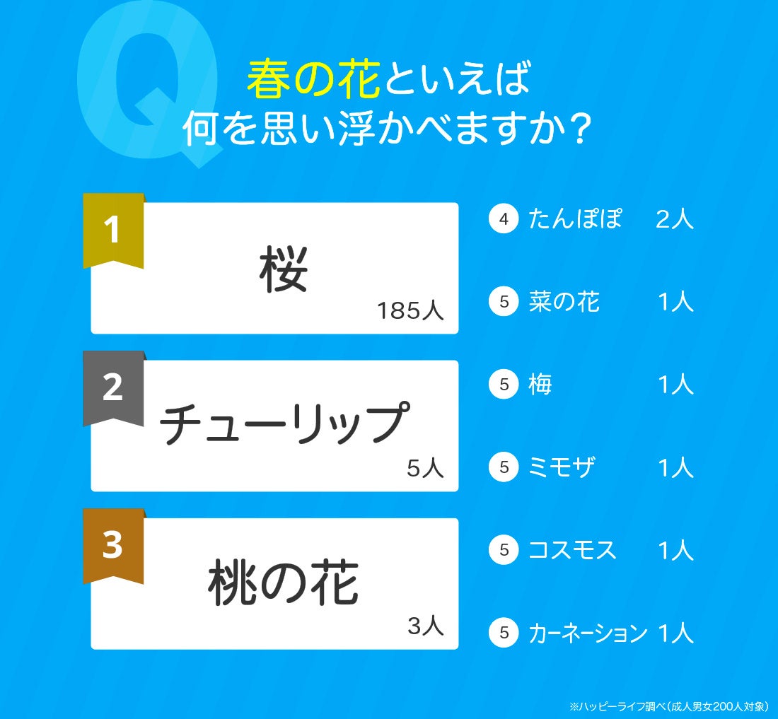 今回のアンケートでは、春といえば桜をイメージする人が多い結果となりました。