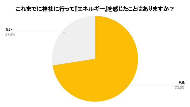 また「これまでに神社に行って『エネルギー』を感じたことはありますか?」との質問には、7割以上の方が「ある」と回答。既にこの「目に見えないエネルギー」を感じ、恩恵を授かったことがある人は多いということもわかりました。さらにエネルギーを感じた神社の種類については、伊勢神宮や出雲大社などの人気パワースポットを挙げる人が多い中、「近所の神社」の人も。それぞれ自分自身の推し神社や神社理論を持っていることもわかりました。