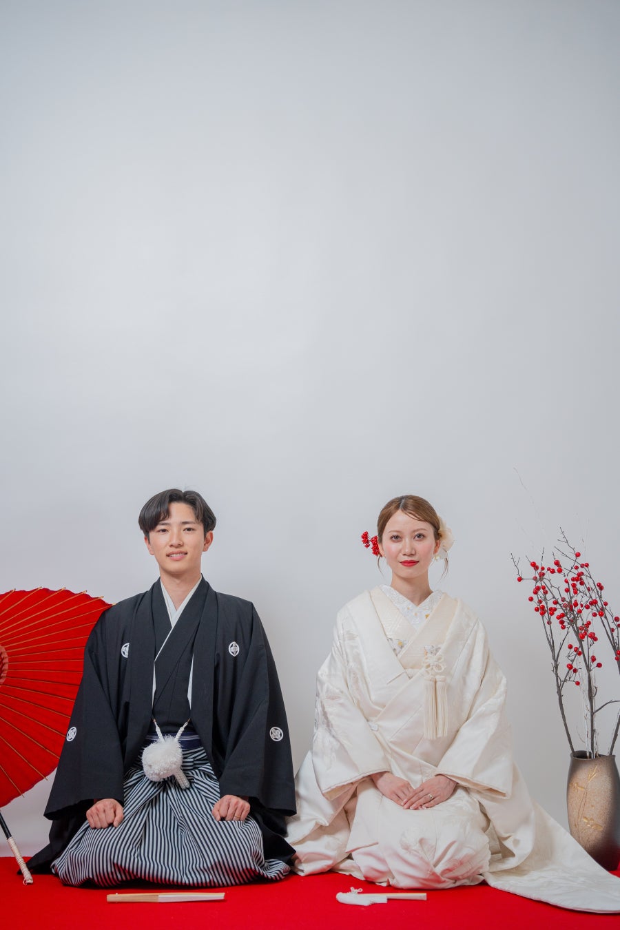 スタジオ特徴:全面ホワイトのスタジオ/カメラマン撮影プランも充実/婚礼和装専用衣装・撮影小物完備/セルフ+カメラマン撮影プラン対応可