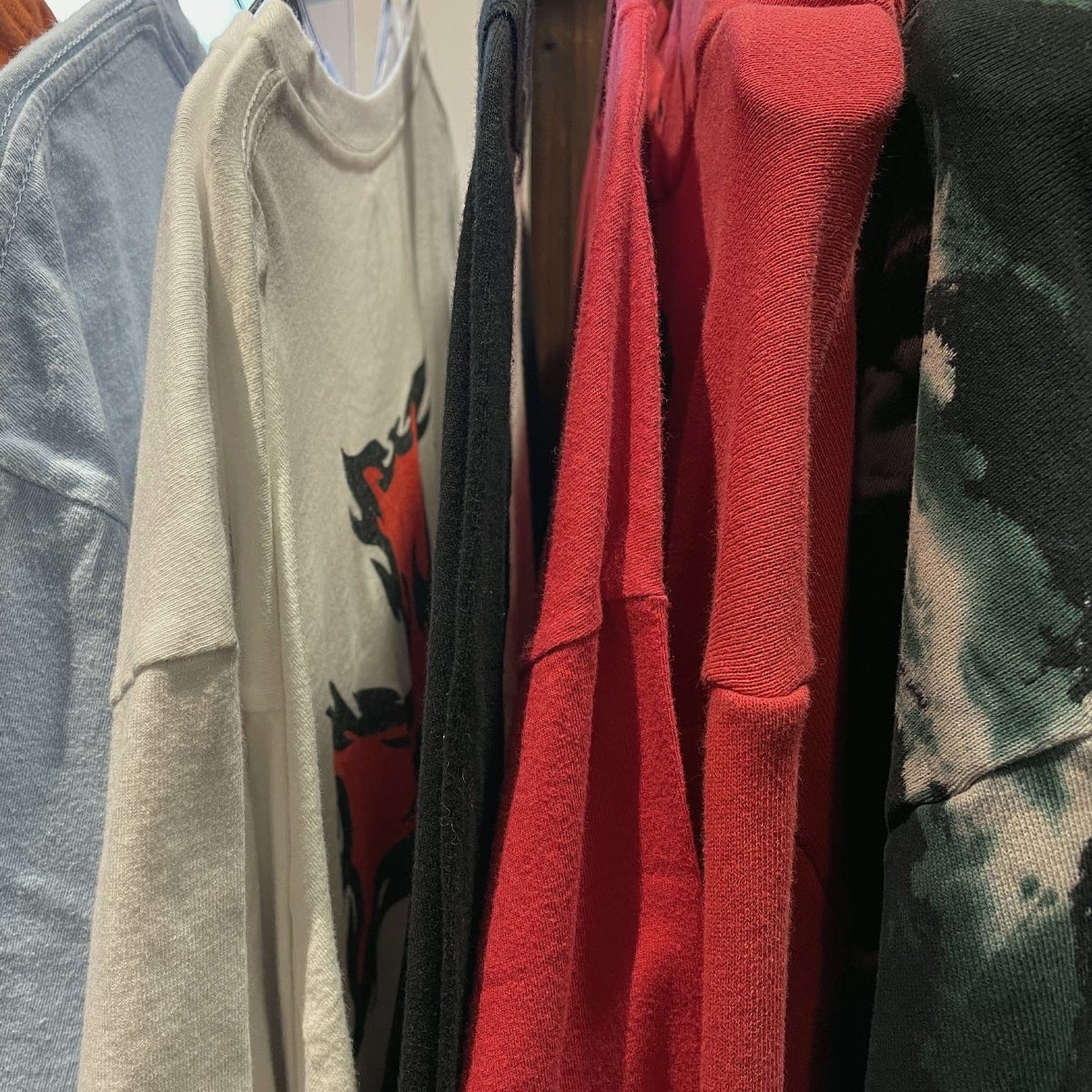 ヴィンテージ加工や、斬新なメッセージが特徴的なプリントアイテム等は、著名アーティストを始め、多くのファンを獲得し、愛用されている。