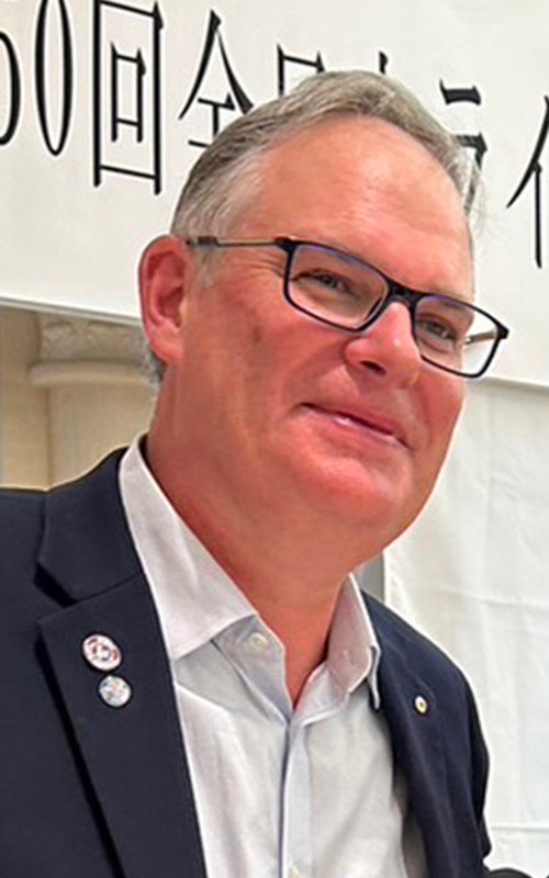 SLSAとJLAのパートナーシップを確立するにあたり、重要な役割を果たしてくださった私の先輩であり同士であるロン・ランキンAMとワレン・レイニー AMとともに、日本に招いていただいたことに感謝しています。これまでJLAがライフセービングを通じた水辺の安全文化を育んでいることは明確で、あらためてILSアジア太平洋地区の会長として、敬意を表したいと思います。我々の戦略的パートナーシップ協定締結後、 複数の交流プログラムや公式代表団の派遣が行われ、私たちの連携はさらに強化されました。スポーツトレーニングプログラムや教育プログラムの交流にもおよび、発展を続けています。私たちは溺水防止と水辺の安全に対し、協力、共通の経験、そして共通のビジョンに基づいた、親密で温かい関係を共有しています。今回の第50回全日本ライフセービング選手権大会を心よりお祝いし、 次の50年が、さらなる成長、新たな業績、そしてこれまでの歩みと同じ情熱と献身に満ちたものとなることを願っています。