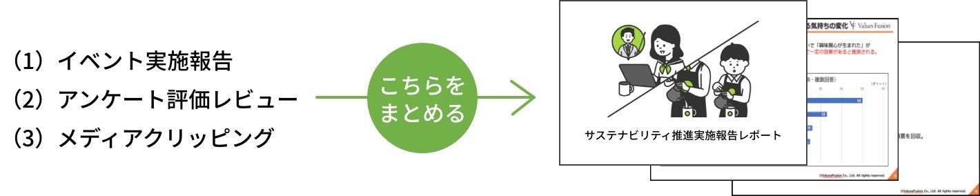 サステナビリティ推進の情報開示として、IR・統合方向書・ESG・CSRレポートなどへ活用できるレポート原稿、写真、当日の記録映像を提供するサービスです。広報・PRは、職業体験や社会体験の提供など自社の強みを活かした「子どもサステナビリティPRネタ創り」、事前事後のメディアプロモート、プレスリリースの作成が可能です。また施策後の効果検証として参加対象者向けの事後アンケート作成・回収、定性的/定量的評価を実施したデータ集計からレポート作成まで一気通関で行います。ESGのS:ソーシャルの可視化とインナー・アウターに向けた広報展開を行うことができます。