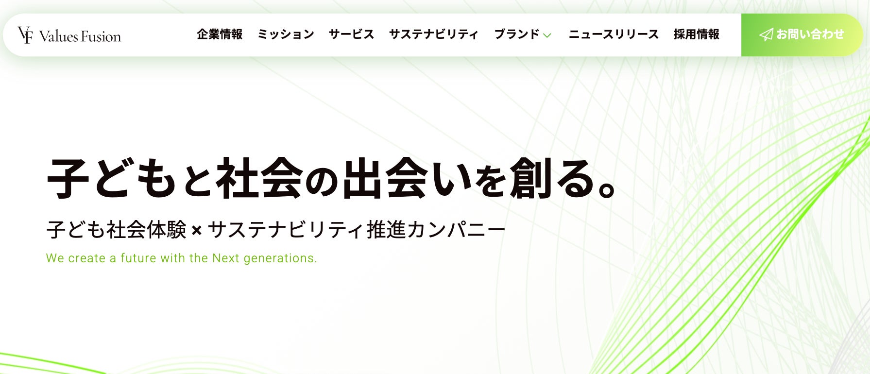 これまで育んできた自社の価値を社会に開き、子どもたちに届けることが、社会との対話となります。その一連のサステナビリティ推進がESG、CSR、 SDGs、社会貢献などにつながっていくと考えております。バリューズフュージョンは、『子どもと社会の出会いを創る。』というミッションのもと、次世代を担う子どもたちの未来と、企業の皆様の企業価値向上と経済成長に貢献しながら、子ども社会体験×サステナビリティ推進を通して社会課題を解決し、サステナブルな社会を皆様と共に創っていきたいと思います。
