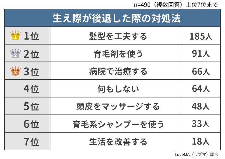 【髪の生え際が後退してきた際の対処法ランキング】男性490人アンケート調査