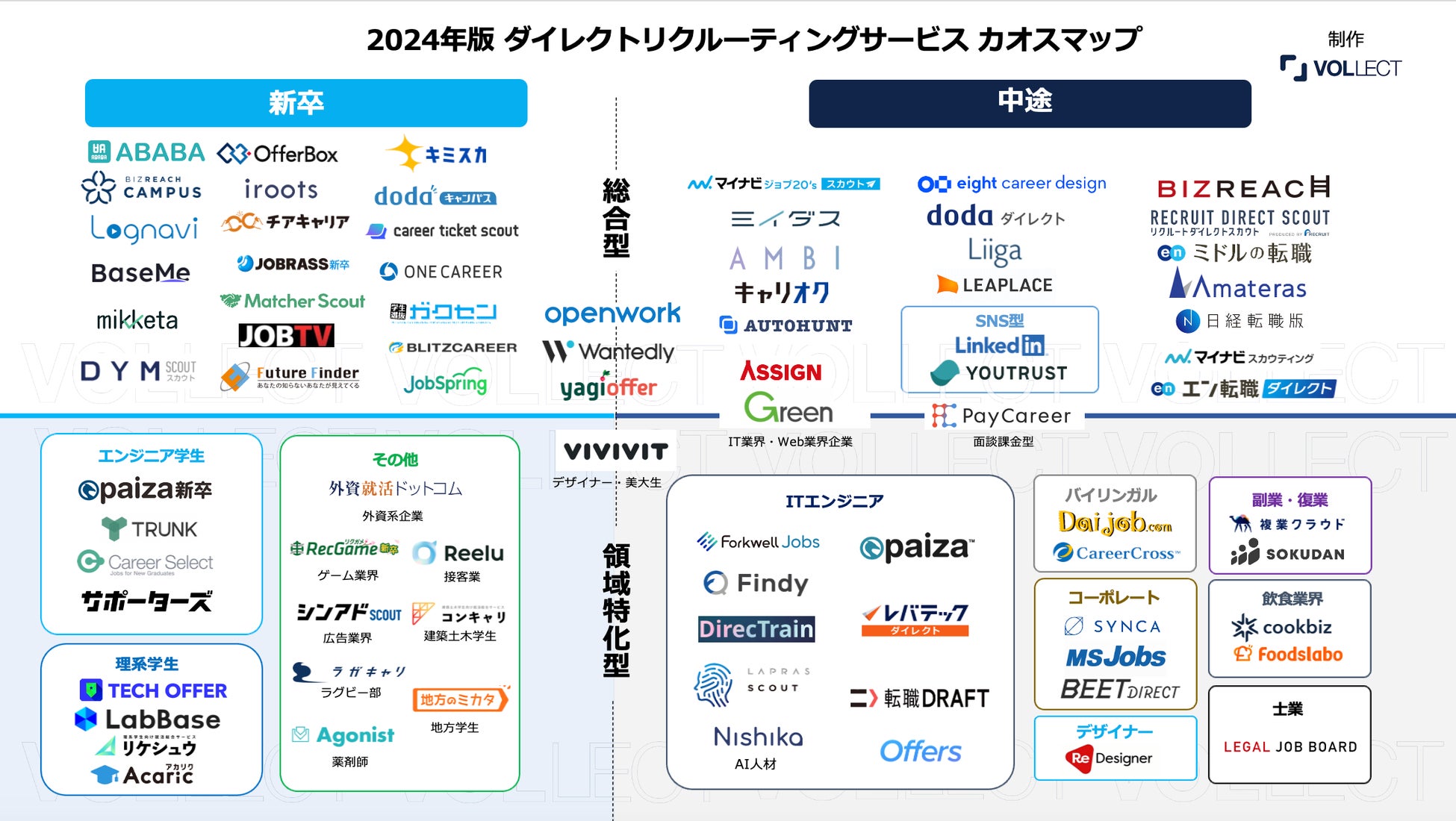 【2024年版】ダイレクトリクルーティングサービスカオスマップ公開|創業6年累計600社以上の企業支援のVOLLECT制作