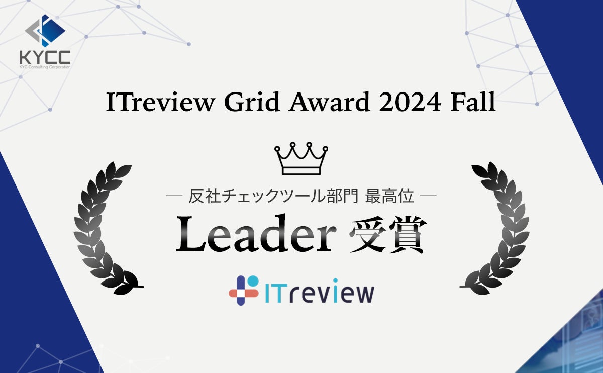 KYCコンサルティング株式会社(本社:東京都千代田区、代表取締役:飛内尚正、以下KYCC)が開発・提供する反社チェックツール「RiskAnalyze」(リスクアナライズ)が、「ITreview Grid Award 2024 Fall」の反社チェックツール部門で最高位となるLeaderを受賞しました。