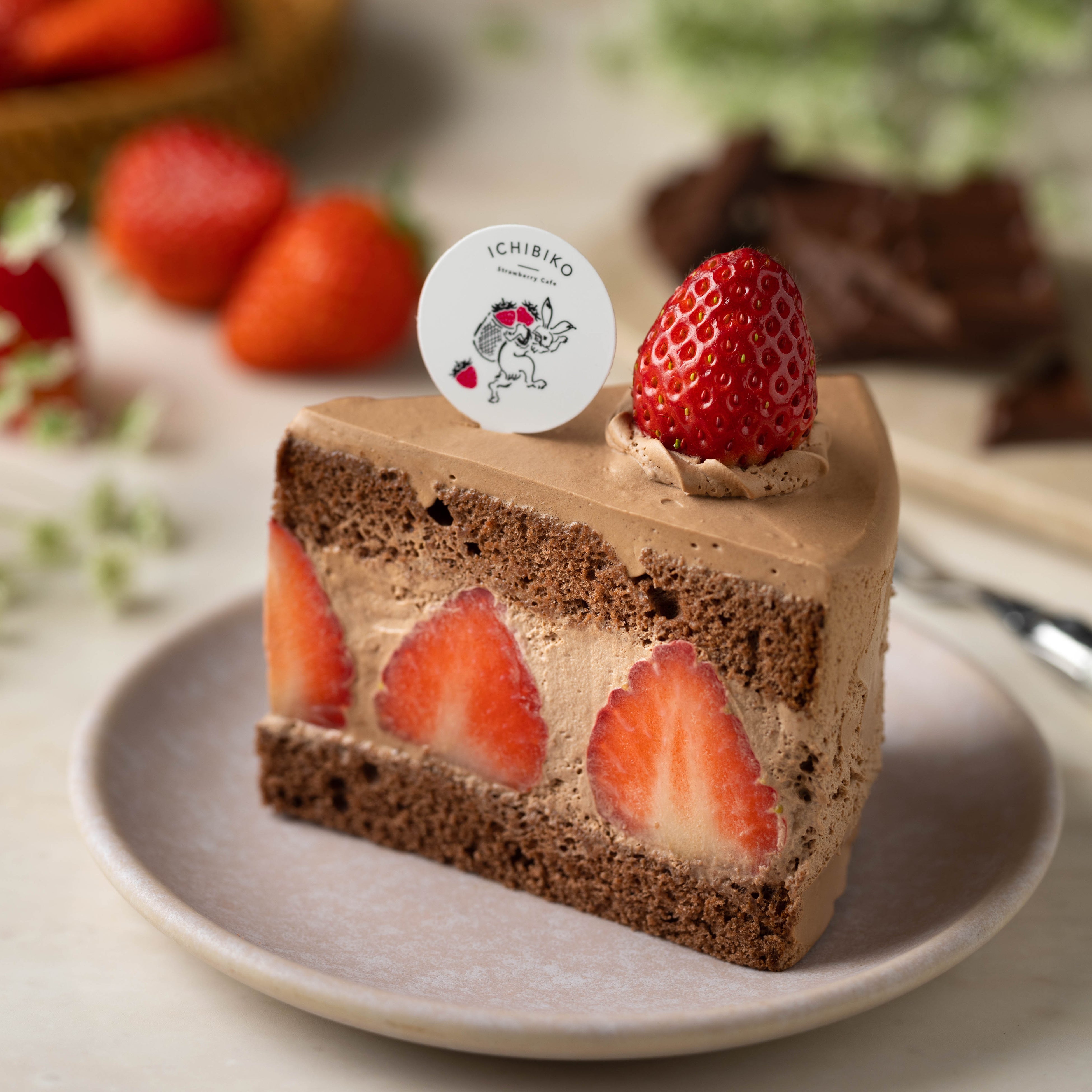 ICHIBIKO人気NO.1「いちごのショートケーキ」に期間限定でチョコレート味が登場。はちみつが隠し味のしっとりふわふわココアスポンジとコク深いのに甘さ控えめなチョコクリームで大粒いちごを丸ごと縦に並べてサンドしました。大きめのボリュームのケーキながら、甘くて濃厚ないちごがたっぷり入っているからあっさり食べすすめられます。