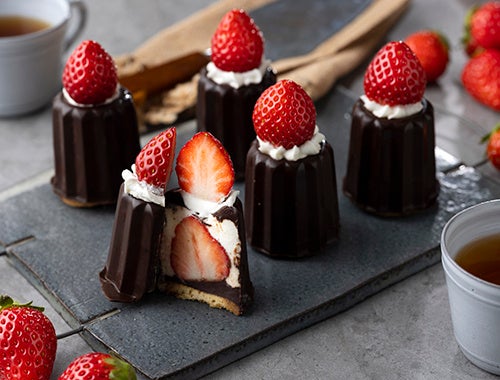 完熟いちごが丸ごと2個味わえる、まるでいちごのキャンドルのようなチョコスイーツ。サブレの上に載せたいちごを濃厚な生クリームとパリパリのチョコでつつみ、チョコの上にも完熟いちごをデコレーションしました。いちごが旬の今だからおいしい、甘くてジューシーな味わいです。