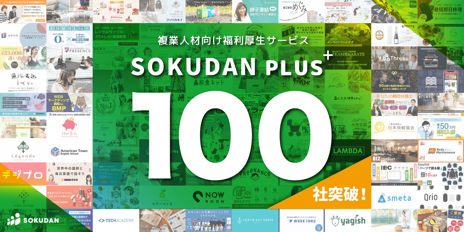複業人材向けの福利厚生サービス「SOKUDAN PLUS+」の提携パートナー企業が100社を突破しました!