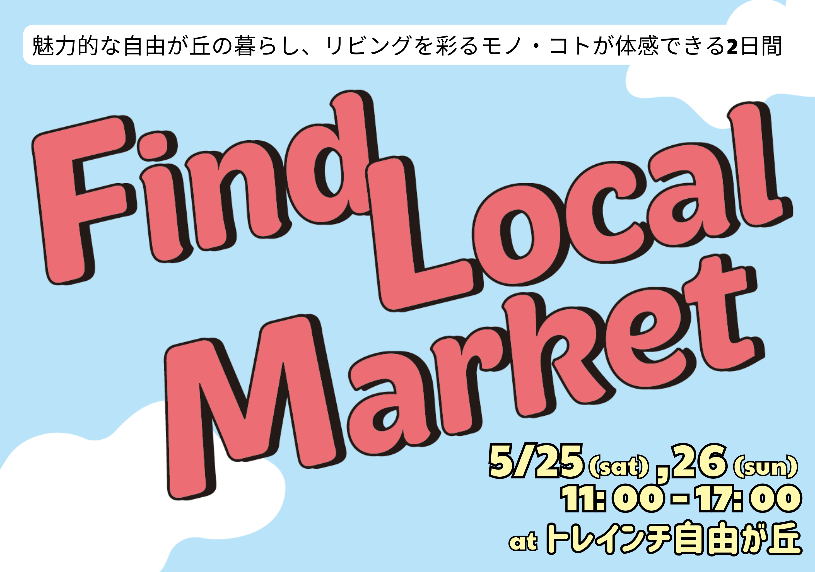 株式会社東急モールズデベロップメント(本社所在地:東京都渋谷区、代表取締役社長:佐々木桃子、以下:当社)は、オープンモール型商業施設「トレインチ自由が丘」(所在地:東京都世田谷区および目黒区)において、自由が丘の魅力をつくり出す店舗や事業者が集まる地域共創イベント「FIND LOCAL MARKET ~リビングを彩るモノ・コト~」(以下:本イベント)を5月25日(土)・26日(日)の2日間開催します。