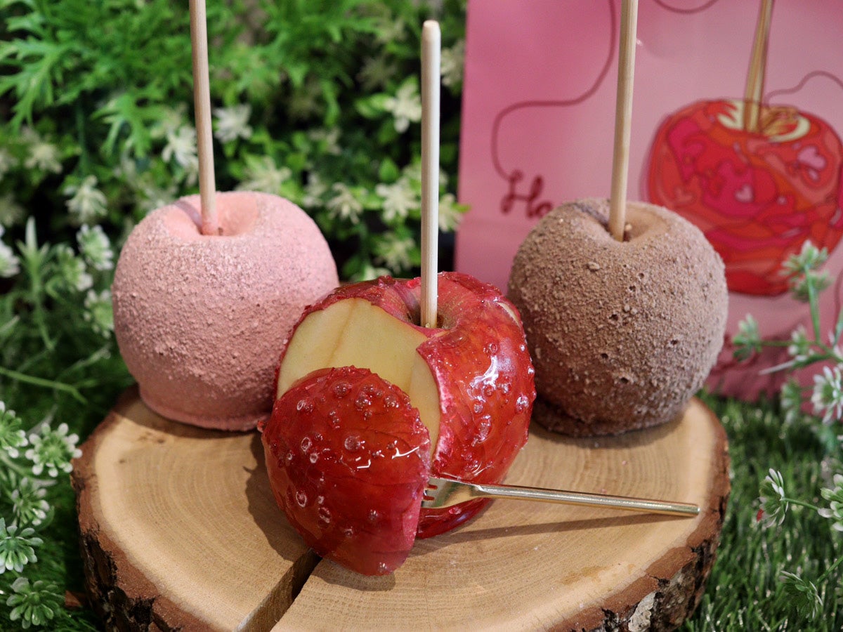 - 常設店で食べられる、食べ歩き用りんご飴「カットテイク」