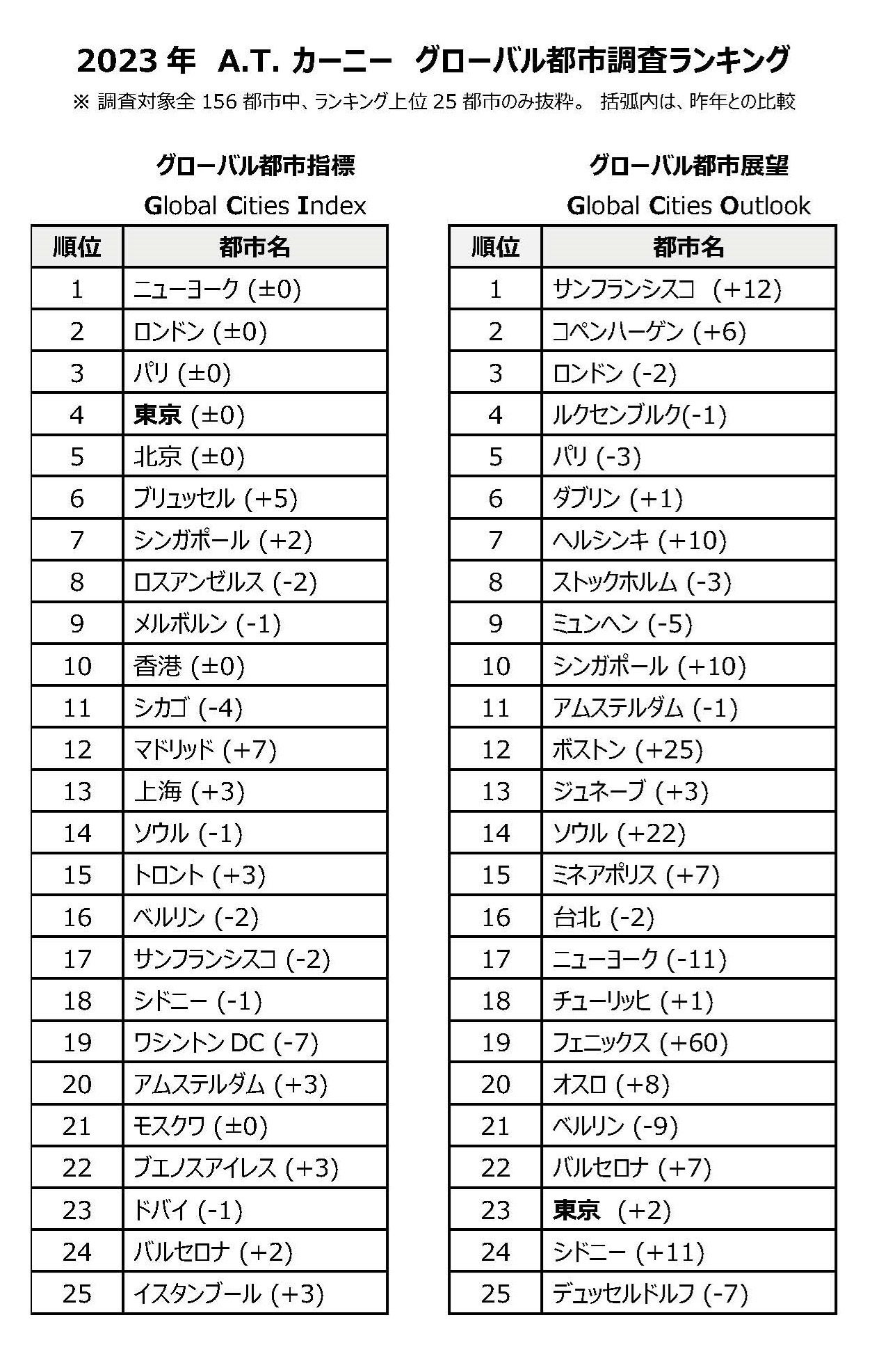 【A.T. カーニー 2023 年グローバル都市調査】