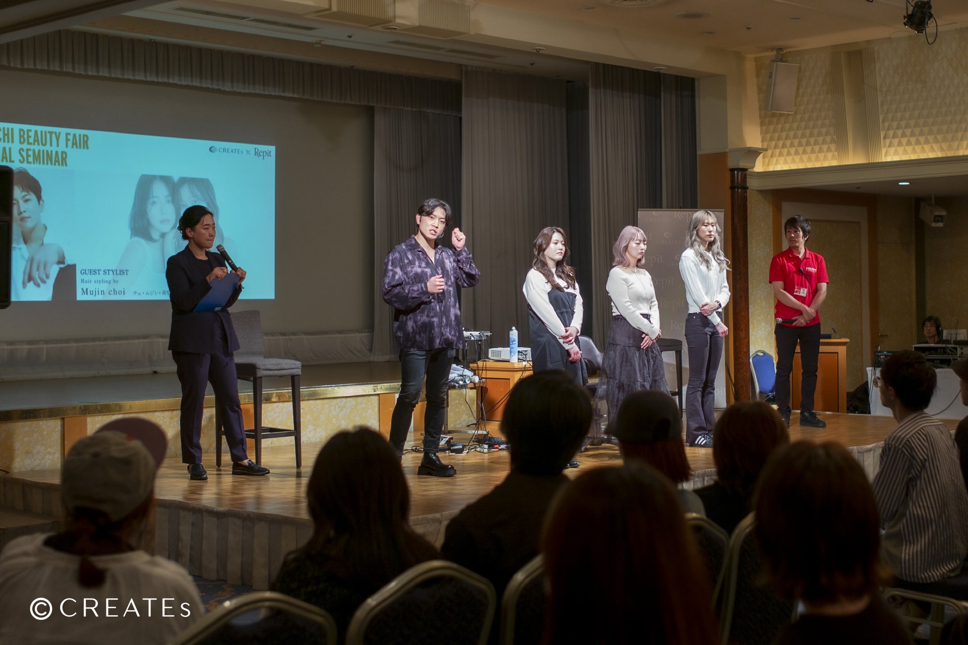 数多くのK-POPアーティストのスタイリングを担当し、Repitビジュアルのスタイリングも担当したムジン氏が来日し、 10月3日に開催された美容サロン関係者向けセミナーに登壇いたしました。いまや世界を魅了するK-POPアイドル、BTSをはじめ、aespaやXGなど有名K-POPアイドルや俳優・女優たちのヘアスタイリングを担当するムジン氏が、撮影現場で行っているリアルなスタイリングテクニックをレクチャー。セミナーでは、ムジン氏から「Repit スクエアバー」「Repit メモリードロップ」を使ったスタイリングのポイントを伺いました。