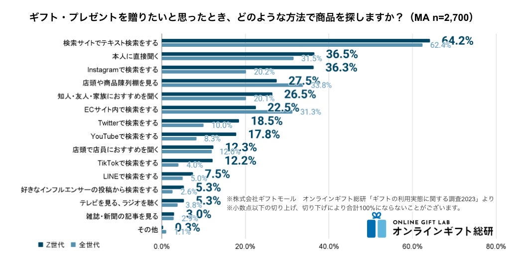 ギフトモール オンラインギフト総研 <Z世代ギフト行動調査>タイパ重視のZ世代のギフト選び、検索行動は「3人に1人は本人に直接聞く」贈り方は「5人に1人はソーシャルギフトで贈る」