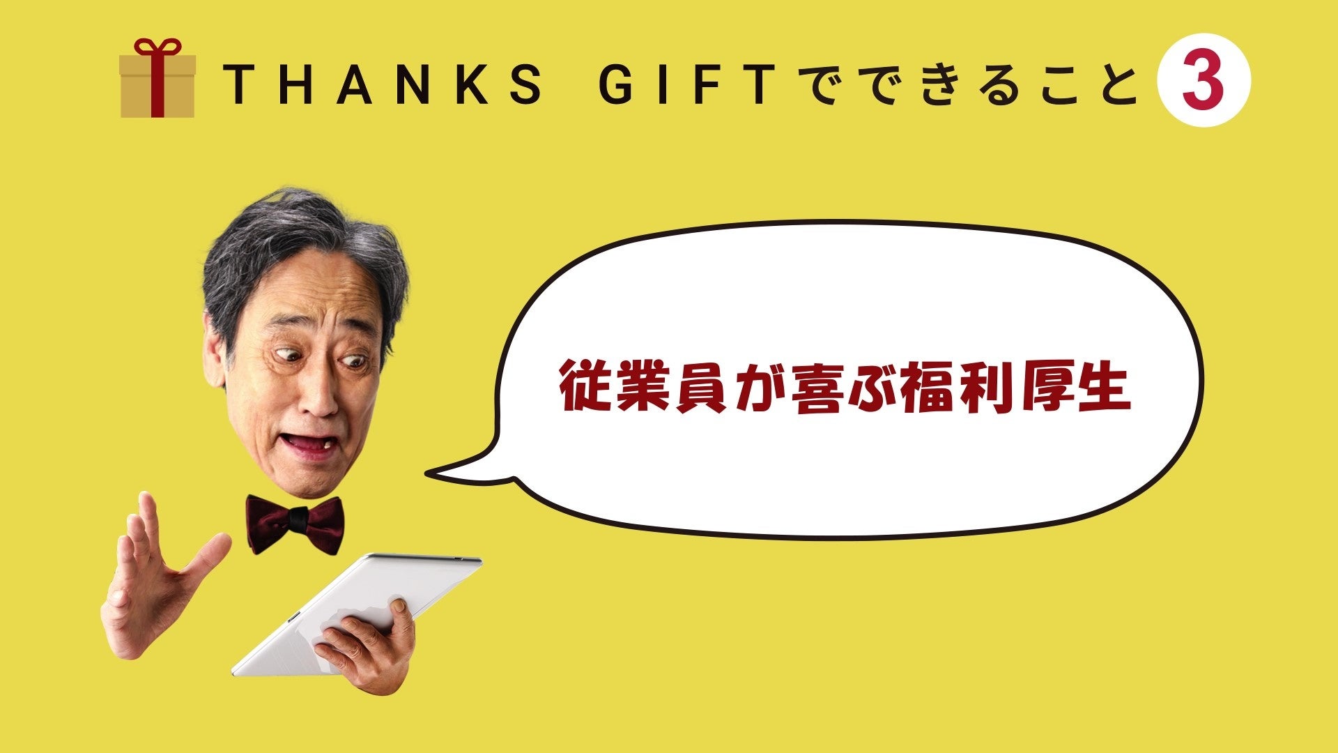 THANKS GIFTの5つのポイントをアニメーションで紹介。約2分でTHANKS GIFTのサービス内容を理解できます。続きは下記の動画をご覧ください。