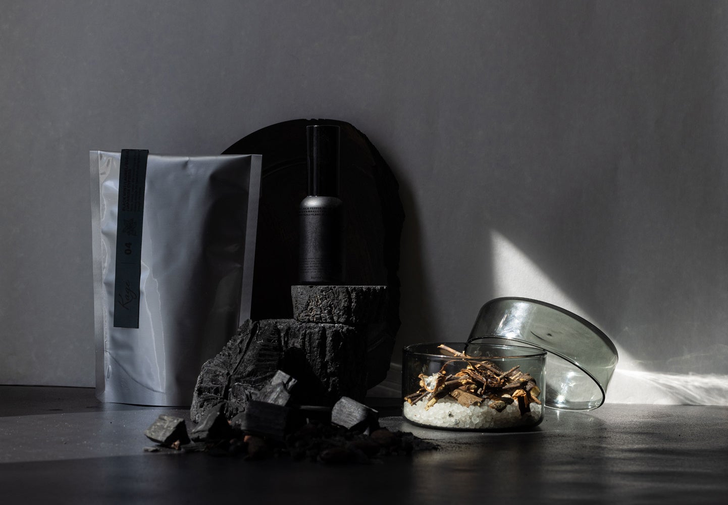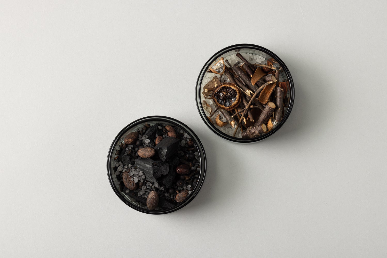 炭やソルト、枝葉などの自然の素材に、黒の香りをうつして。