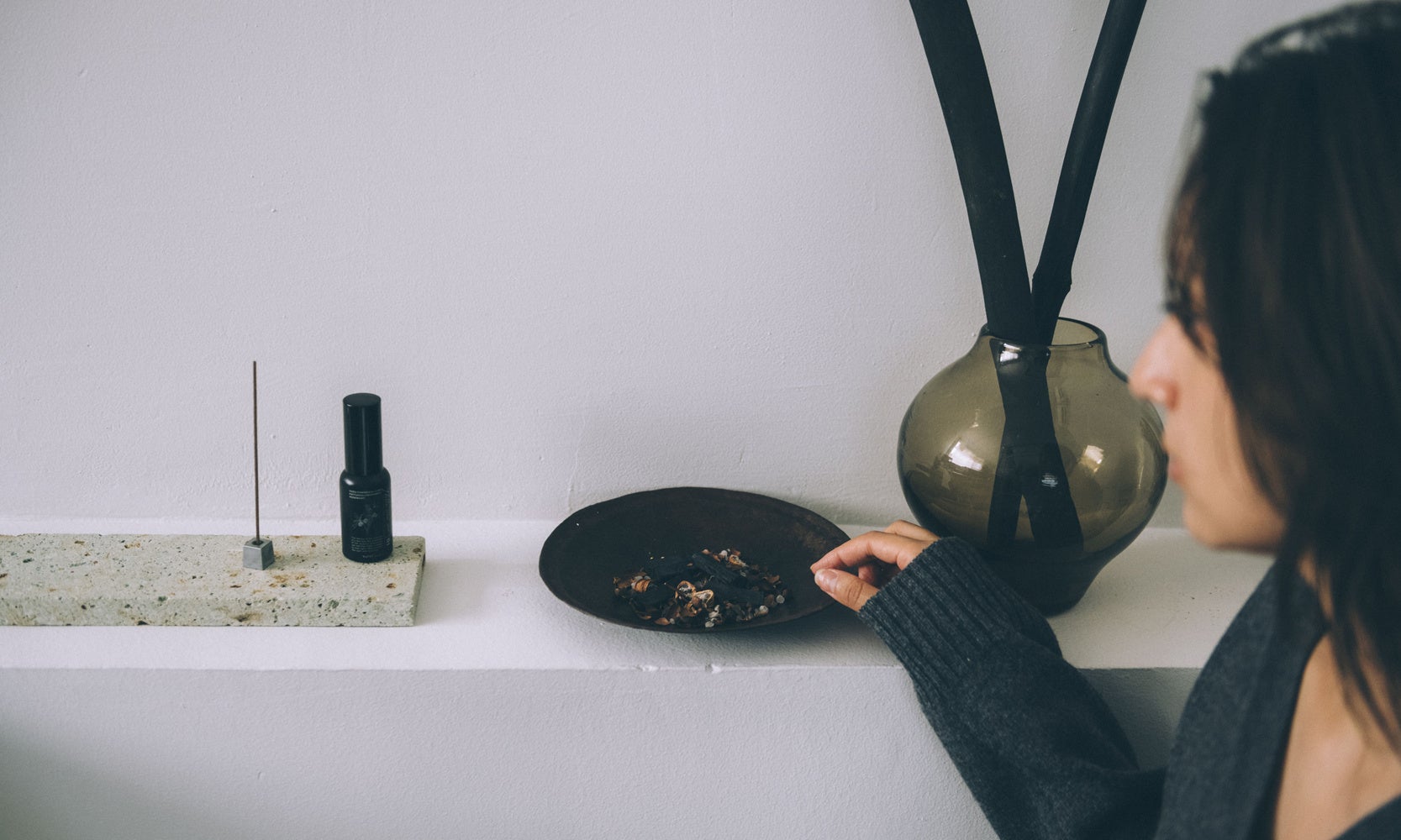 自然にある黒 − 苔や石、土、深い空、海。黒の神聖さを表現し、あなたのお守りとなるような香りに。祈りとは、雑念をはらい、浄化させ、自分と向き合う時間。精神統一、自分と向き合い、確かめ合う時間に。澄んだ精神に宿るものが届けたい思いとなる。