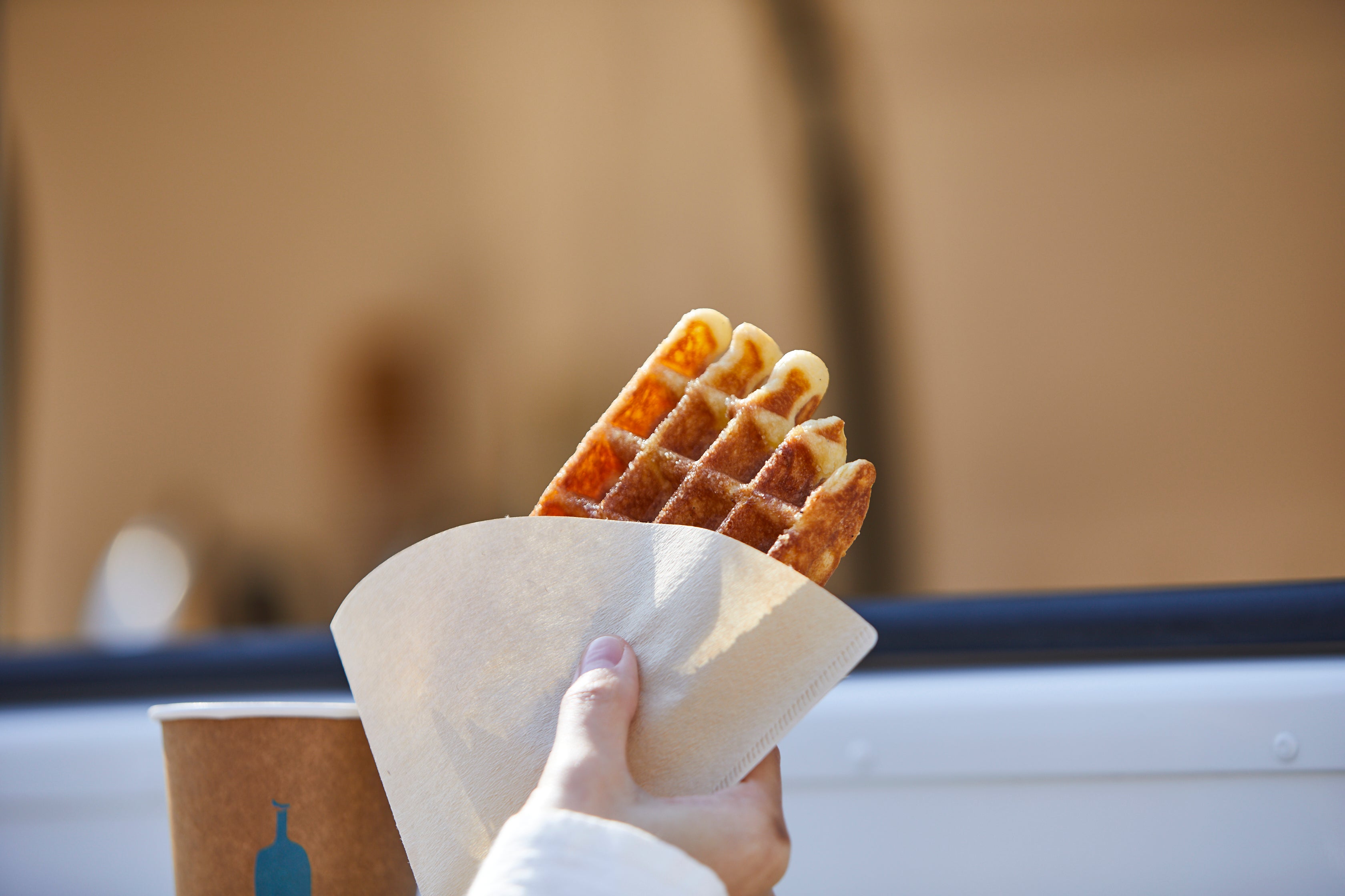 ブランドロゴを入れたクラシックなデザインの車体にエスプレッソマシンを搭載したこちらのコーヒートラックでは、カフェと同様にバリスタがラテアートを施したエスプレッソドリンクに加え、ご注文をいただいてから焼き上げて熱々な状態でご提供する、ブルーボトルコーヒーのアイコンメニューである「リエージュワッフル」をご用意いたしました。またエスプレッソに使用するのは、ブランドとして初めてアウトドアシーンに向けて開発された「アウトドア ブレンド」。世界でここでしか味わえないエスプレッソドリンクを、気持ち良い日差しと風の中でお楽しみ下さい。