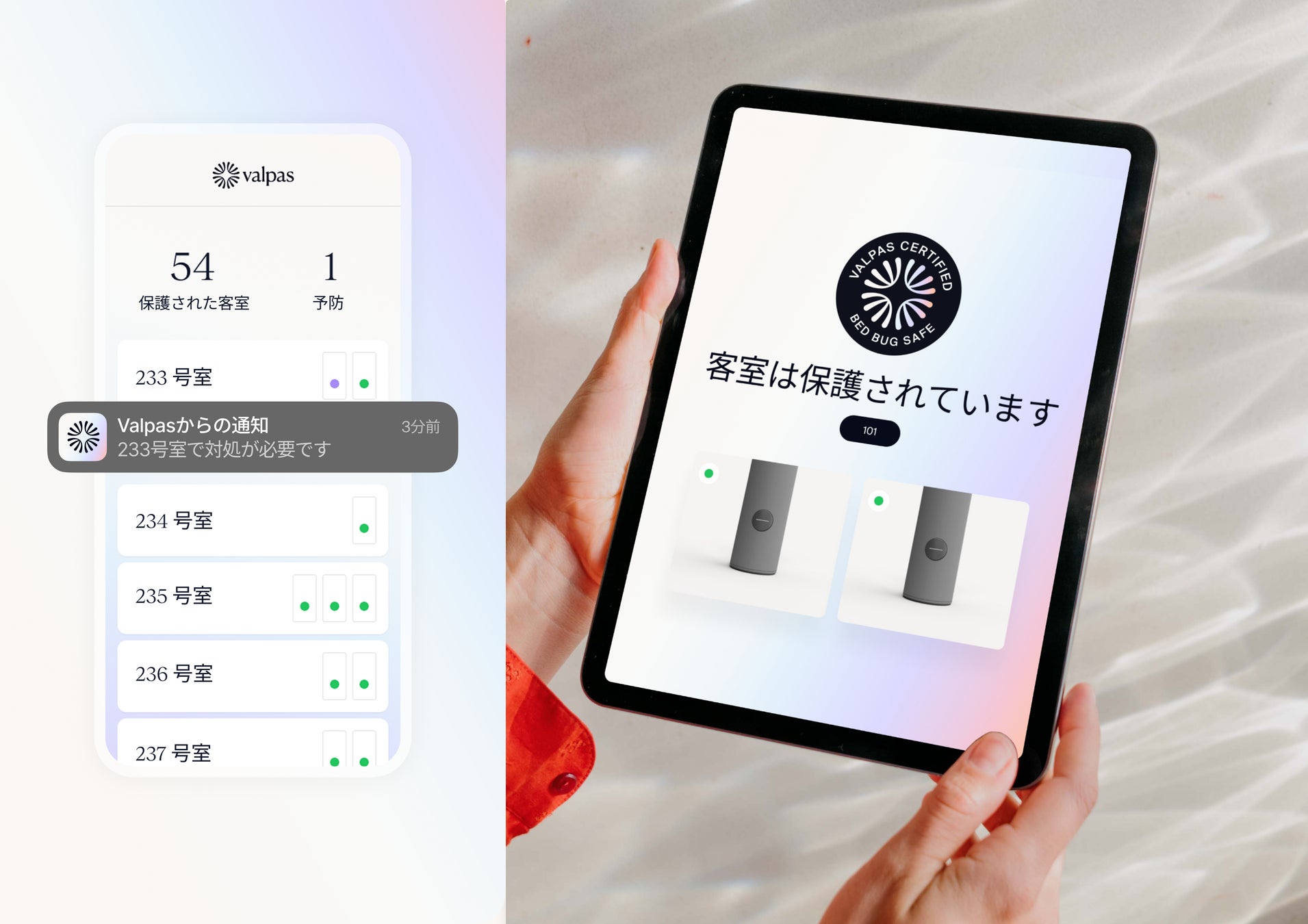 また、導入施設はValpasの「トコジラミ・セーフ」認証ラベルを掲示でき、宿泊者は予約時や現地で「対策済み」であることを確認可能。宿泊者にとっても、安心を「見える化」した新たな選択基準となります。