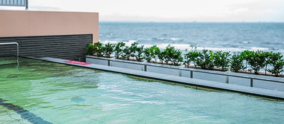 「JFA夢フィールド 幕張温泉 湯楽の里」東京湾が広がる絶景露天風呂