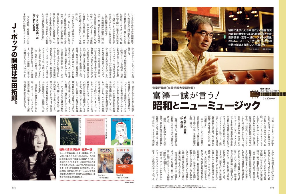 この度発売の最新号、2022年 12月号/vol.76 の 特集は『俺たち ニューミュージック世代』。