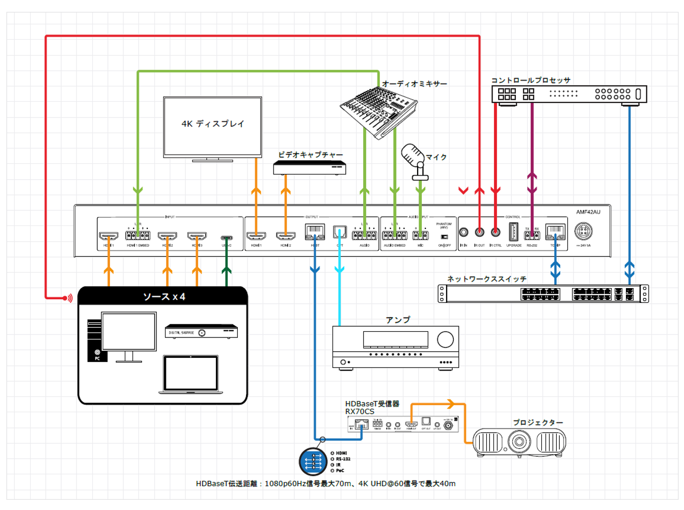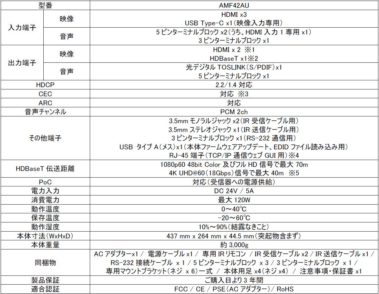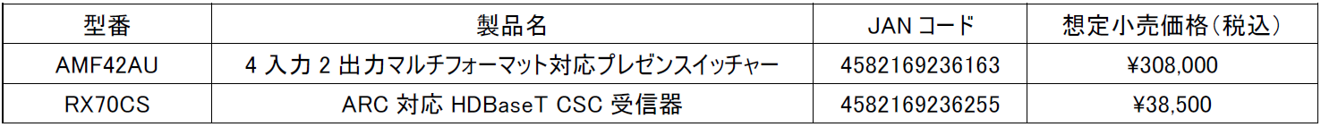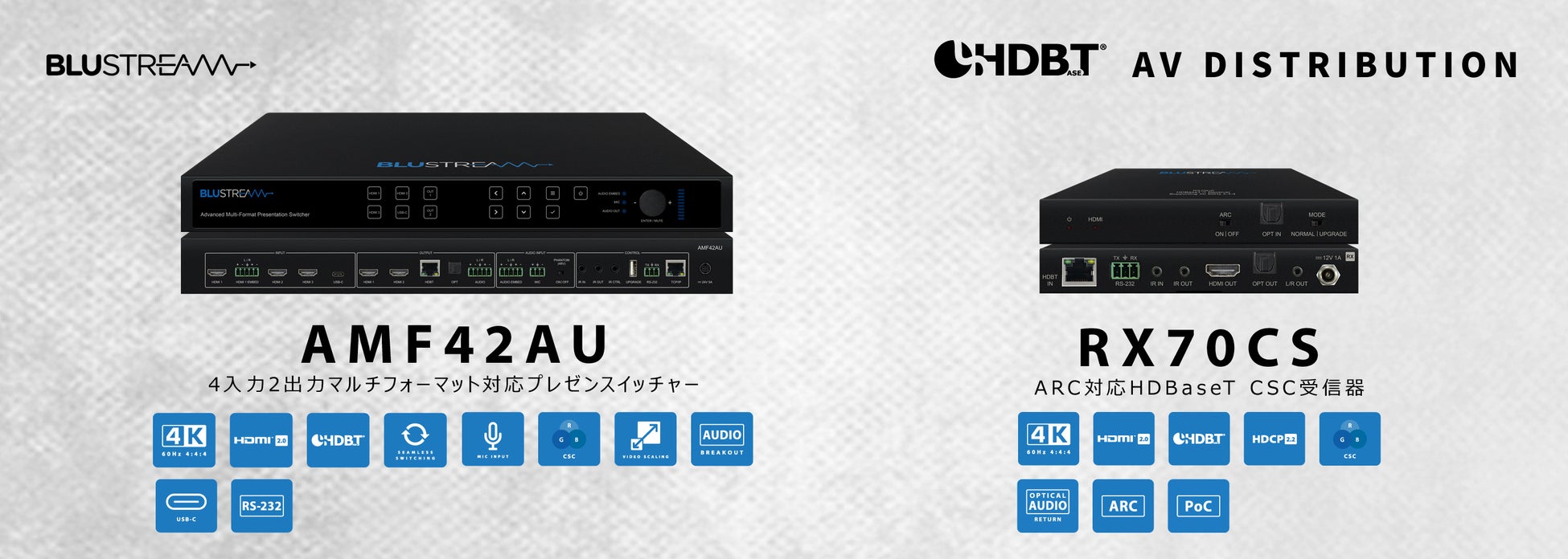4入力2出力マルチフォーマット対応プレゼンスイッチャー[型番:AMF42AU]/ ARC対応 HDBaseT CSC受信器[型番:RX70CS]