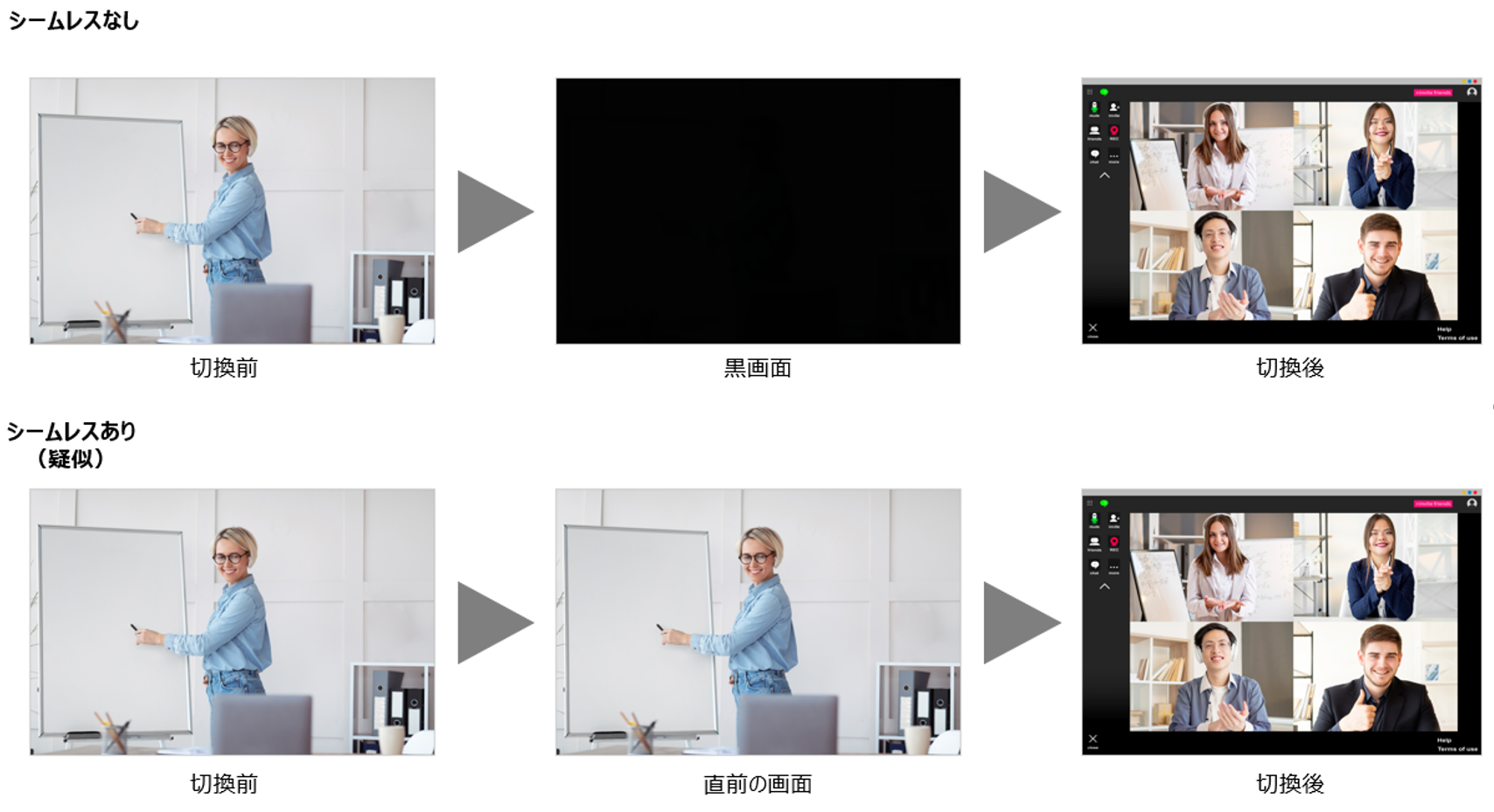 入力信号切換時に黒画面を挟まない疑似シームレス切換に対応しています。