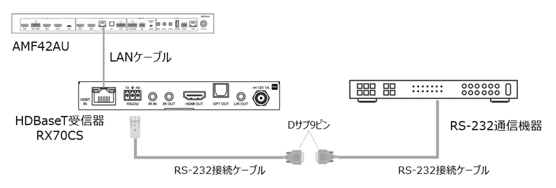 - 専用HDBaseT受信器経由でのRS-232コマンド送信