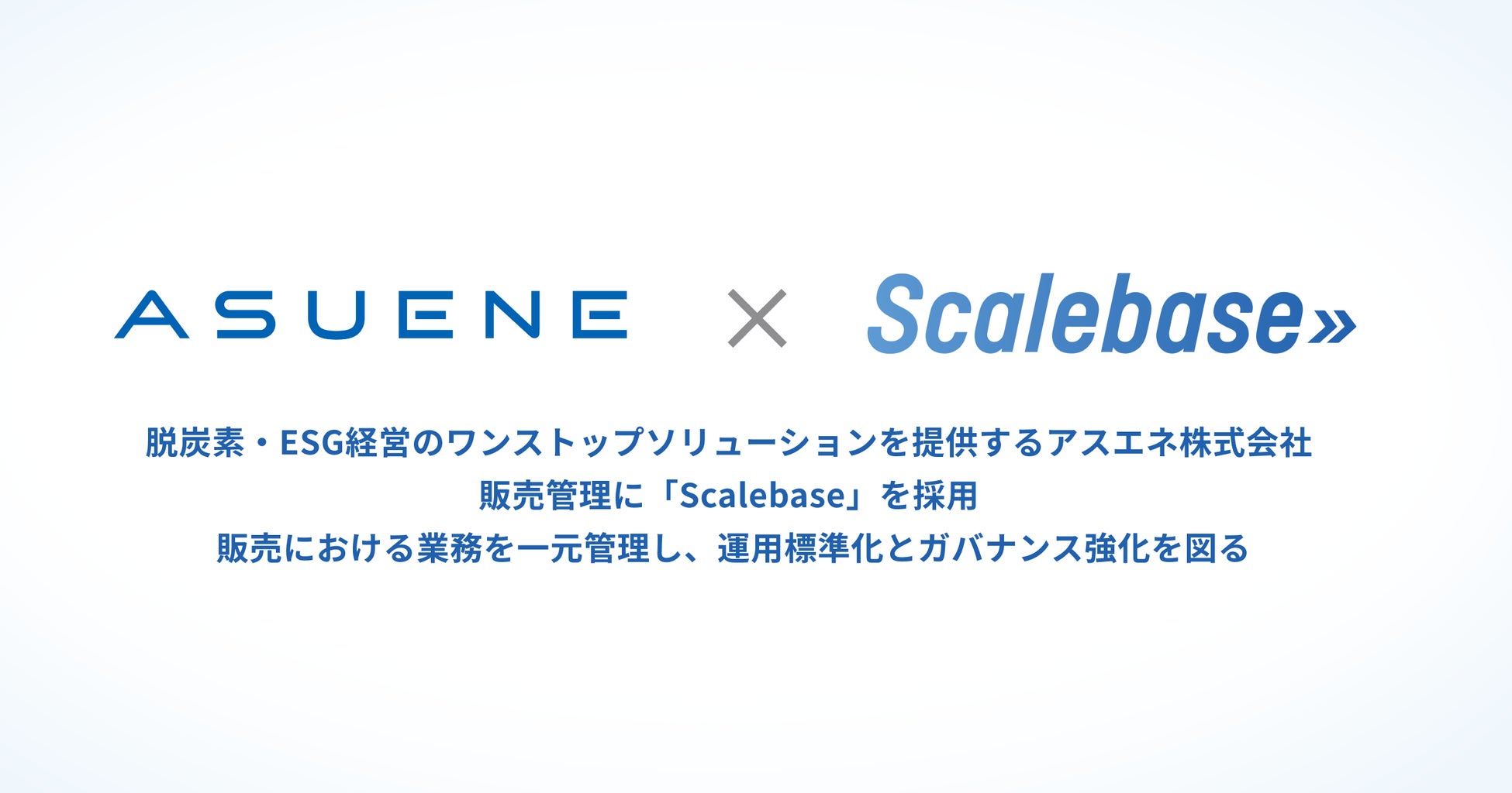 AIで企業の収益プロセスを最適化する Scalebase株式会社(本社:東京都港区、代表取締役CEO:毛利 悠記、以下、Scalebase)は、「Scalebase」(スケールベース)および「Scalebase ペイメント」が、アスエネ株式会社(本社:東京都港区、代表取締役CEO:西和田 浩平、以下、アスエネ)に採用されたことをお知らせします。
