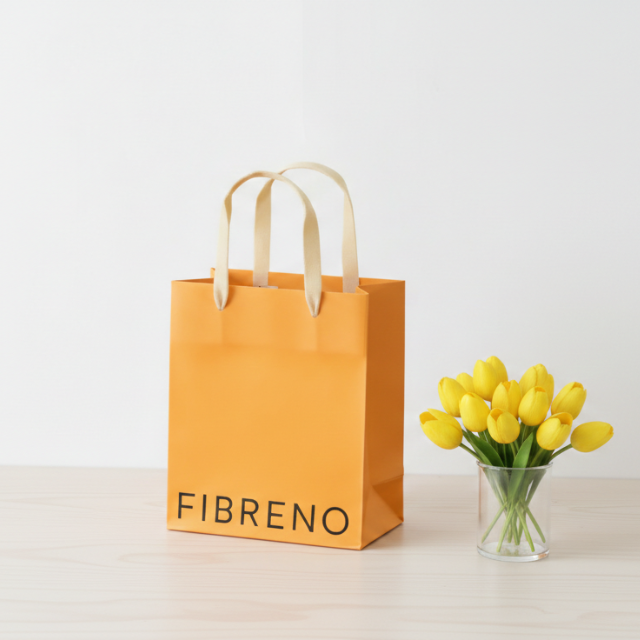 FIBRENOのブランドカラーを使用した、店頭販売限定のショッパーです。