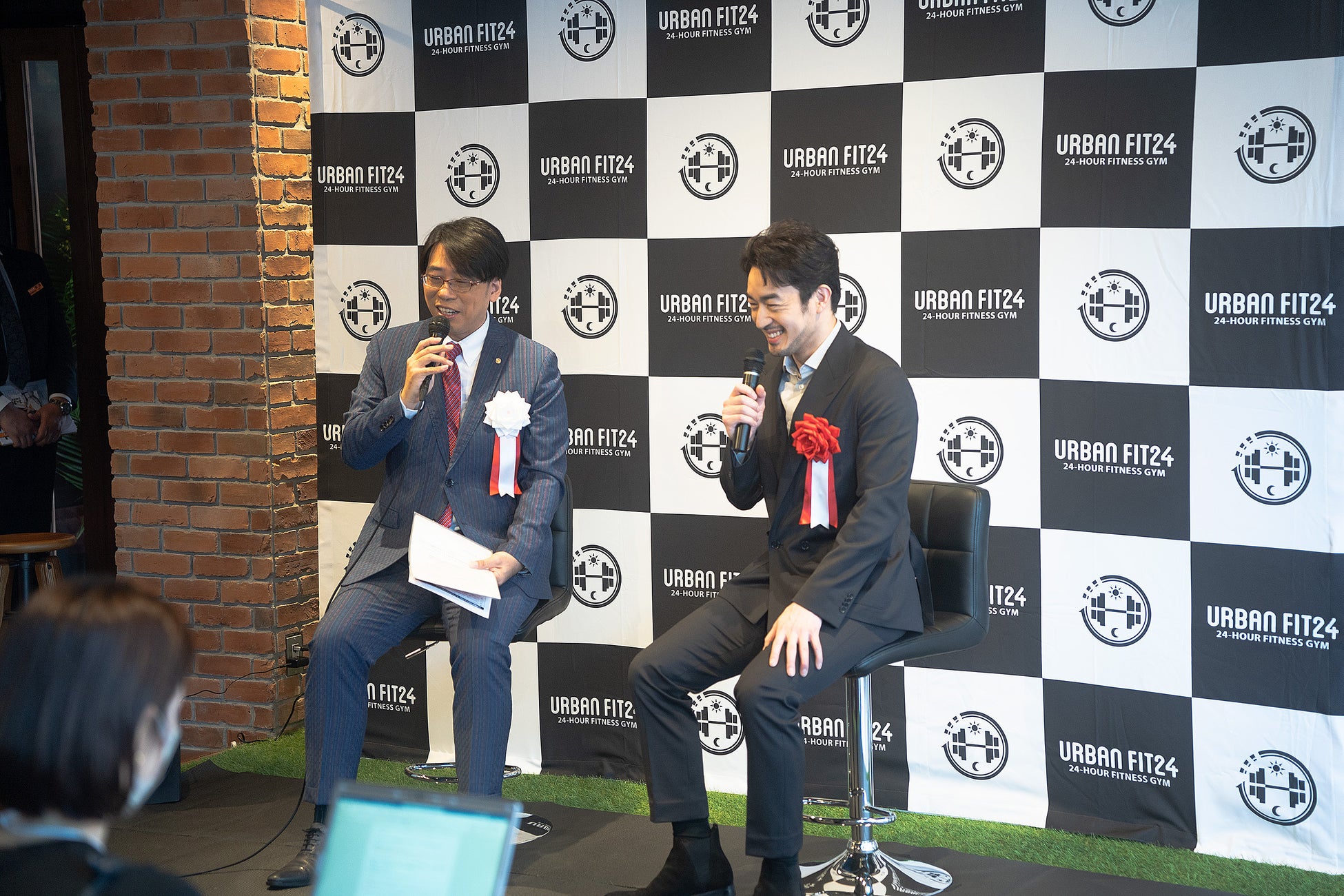 オープニングセレモニーでは、大谷亮平さんと当社代表取締役社長兼アーバンフィット取締役会長の山本拓真とのトークセッションを行い、大谷亮平さんが小学生の頃から続けているバレーボールや、俳優として普段の役作りにおける心がけ等に関する話題を通して、運動を長続きさせるためのお考えをお話いただきました。