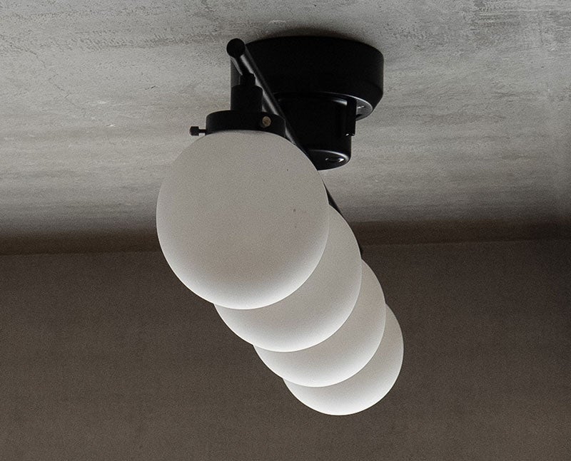 細くスタイリッシュなスチールと、乳白色のガラスシェードのシーリングライトが新登場!丸くやさしい明かりがお部屋を照らします。