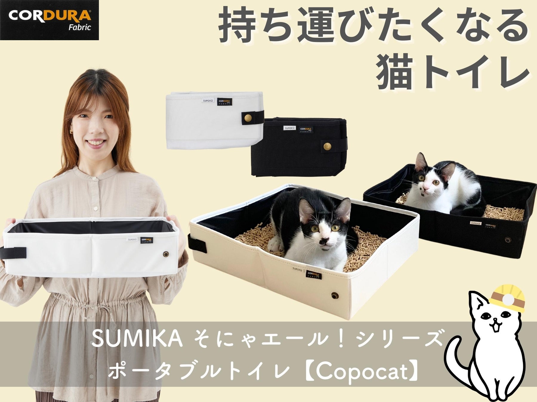 SUMIKA そにゃエール!シリーズ【Copocat:コポキャット】は、”どこで出しても褒められる”スタイリッシュでファッション性の高いデザインにもこだわりました。従来のポータブルトイレにありがちな肉球マークなどは付けておりません。男性でも女性でも性別問わずご活用いただけます。