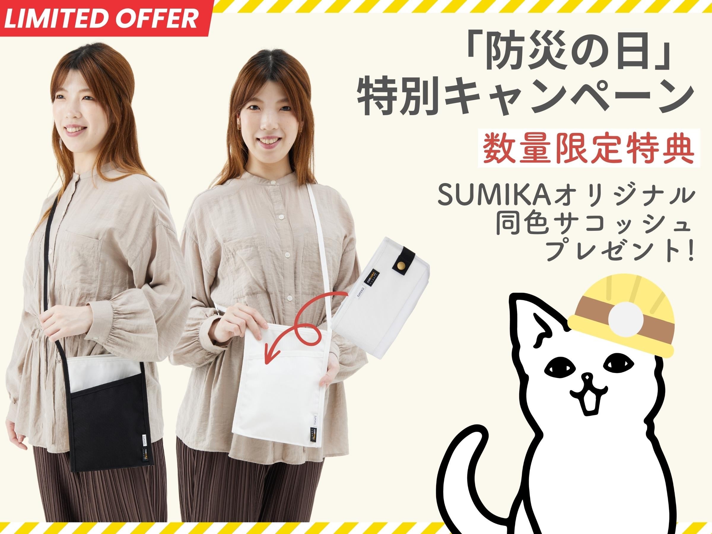 9月1日の「防災の日」にちなんで、避難場所でも使いやすいコーデュラ製のオリジナルサコッシュを数量限定にてプレゼント中です。