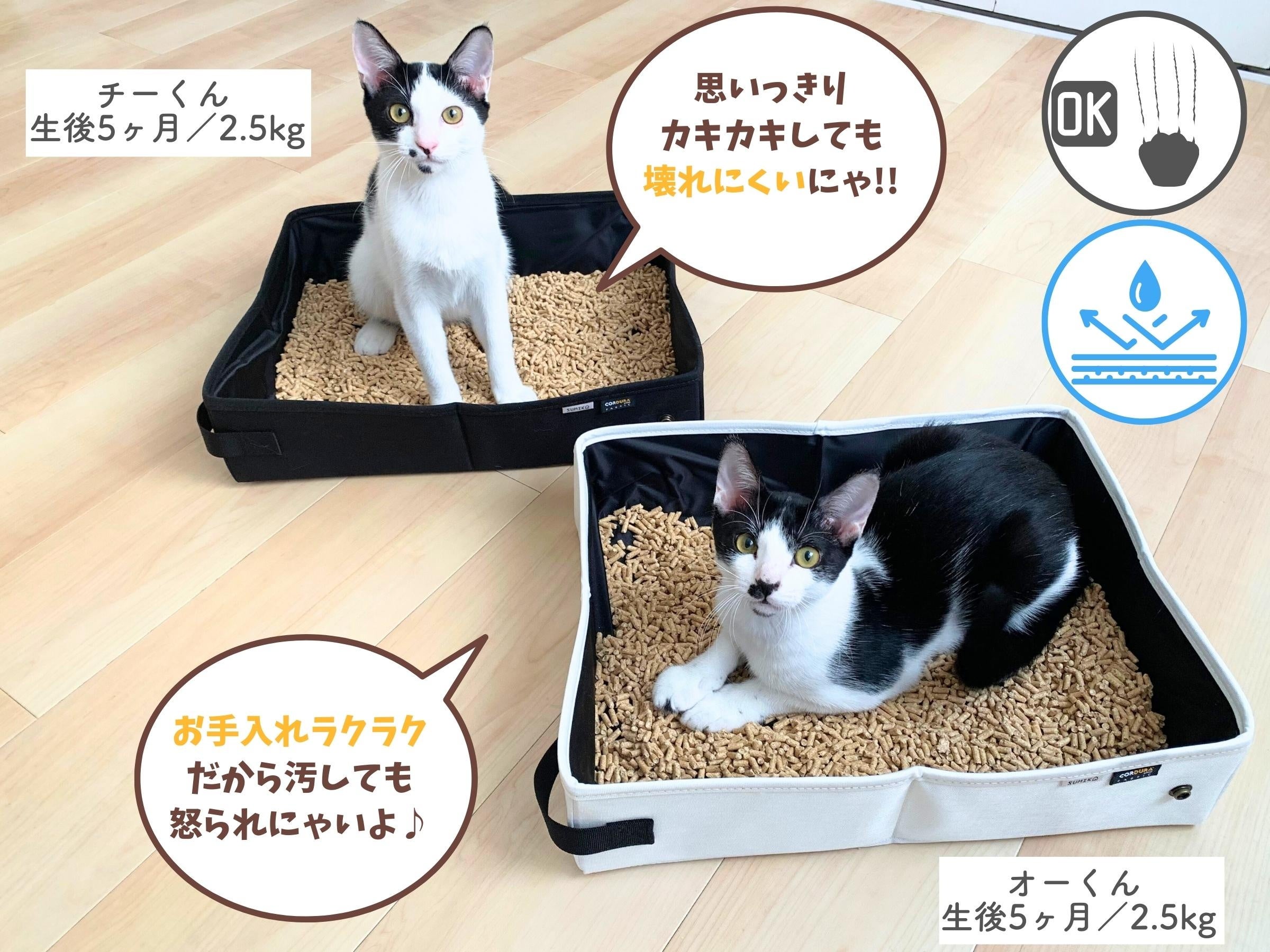 そのような背景から、従来では防災グッズの意味合いが強かった猫ちゃんのポータブルトイレも、今でも”猫オーナーさまのマナー用品”として必需品に。反面、ワンちゃんグッズのように、デザイン性の高い商品は少ないことも事実です。