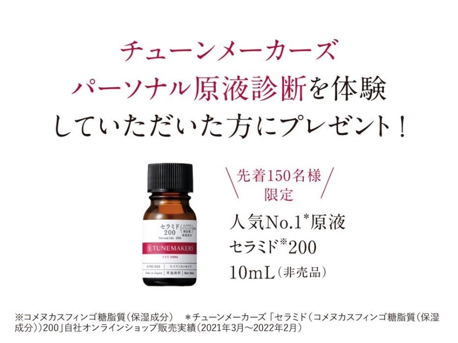 原液美容ブランド「チューンメーカーズ」が、阪急うめだ本店にて期間限定ショップをオープン!お得な特典や、人気の“原液ワークショップ”も開催。