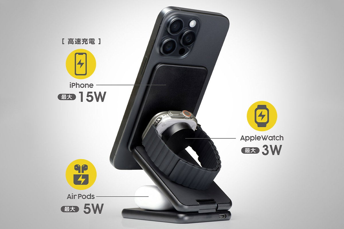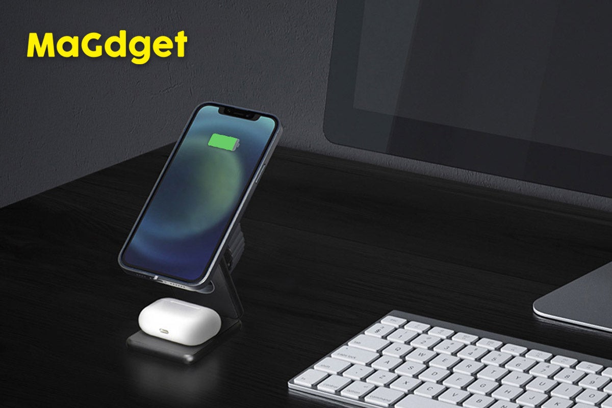 Apple三種の神器を同時に充電できる折りたたみ式のスタンド型充電器「MaGdget Fold Charge」のクラウドファンディングがスタート!