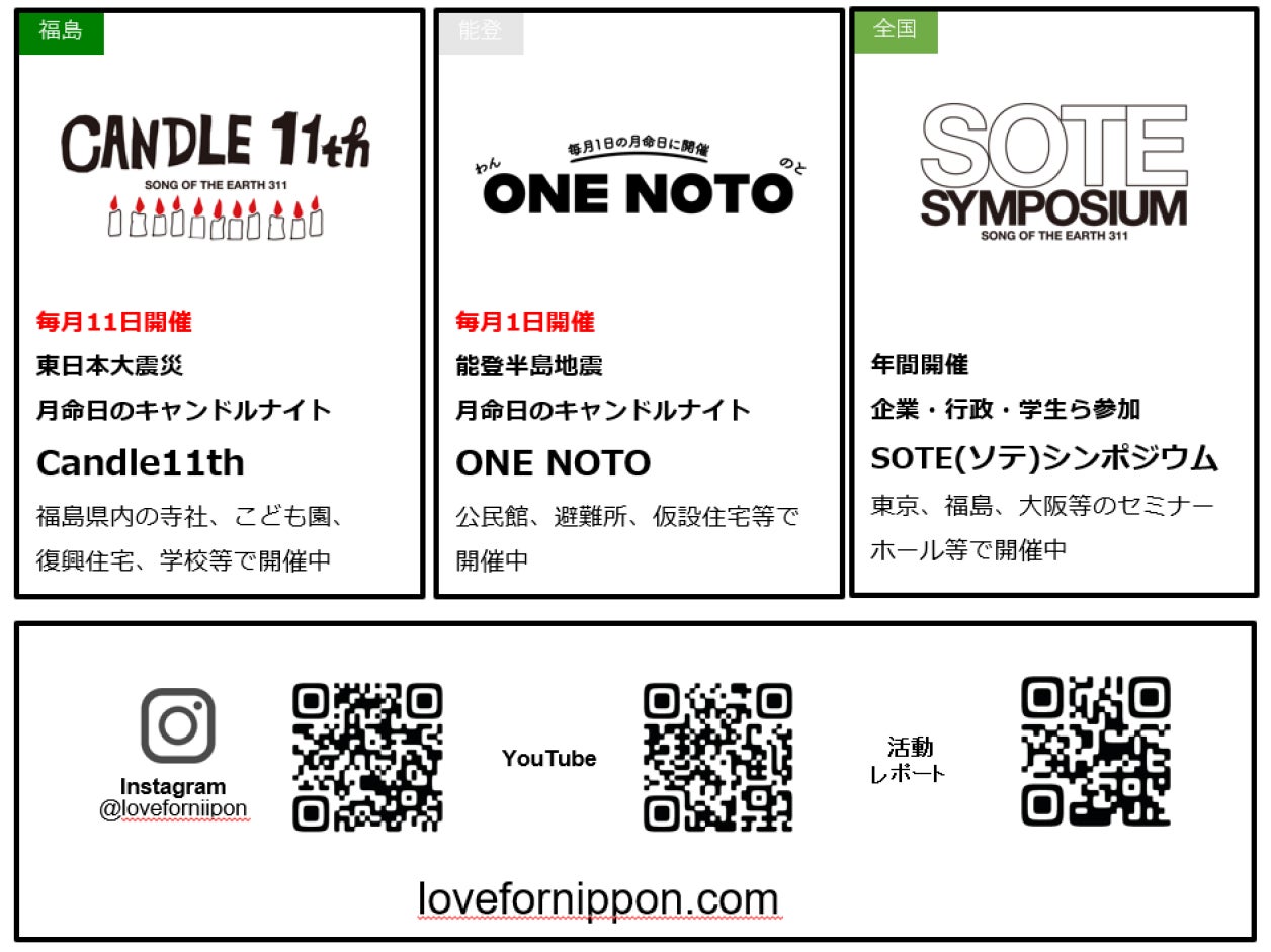 一般社団法人LOVE FOR NIPPON(本社:東京都渋谷区、代表:CANDLE JUNE)は、熊本地震から