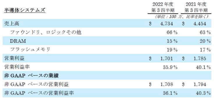 社長兼CEOのゲイリー・ディッカーソンは次のように述べています。「当社は過去最高の四半期売上高を計上することができました。しかしながら、サプライチェーンのひっ迫の継続により需要に応えきれておらず、お客さまへの出荷増が引き続き最優先課題となっています。当社はマクロ経済の向かい風を乗り切る自信を持っており、半導体市場の長期的な堅調さと当社の非常に大きな成長機会はさらに続くものと見ています」