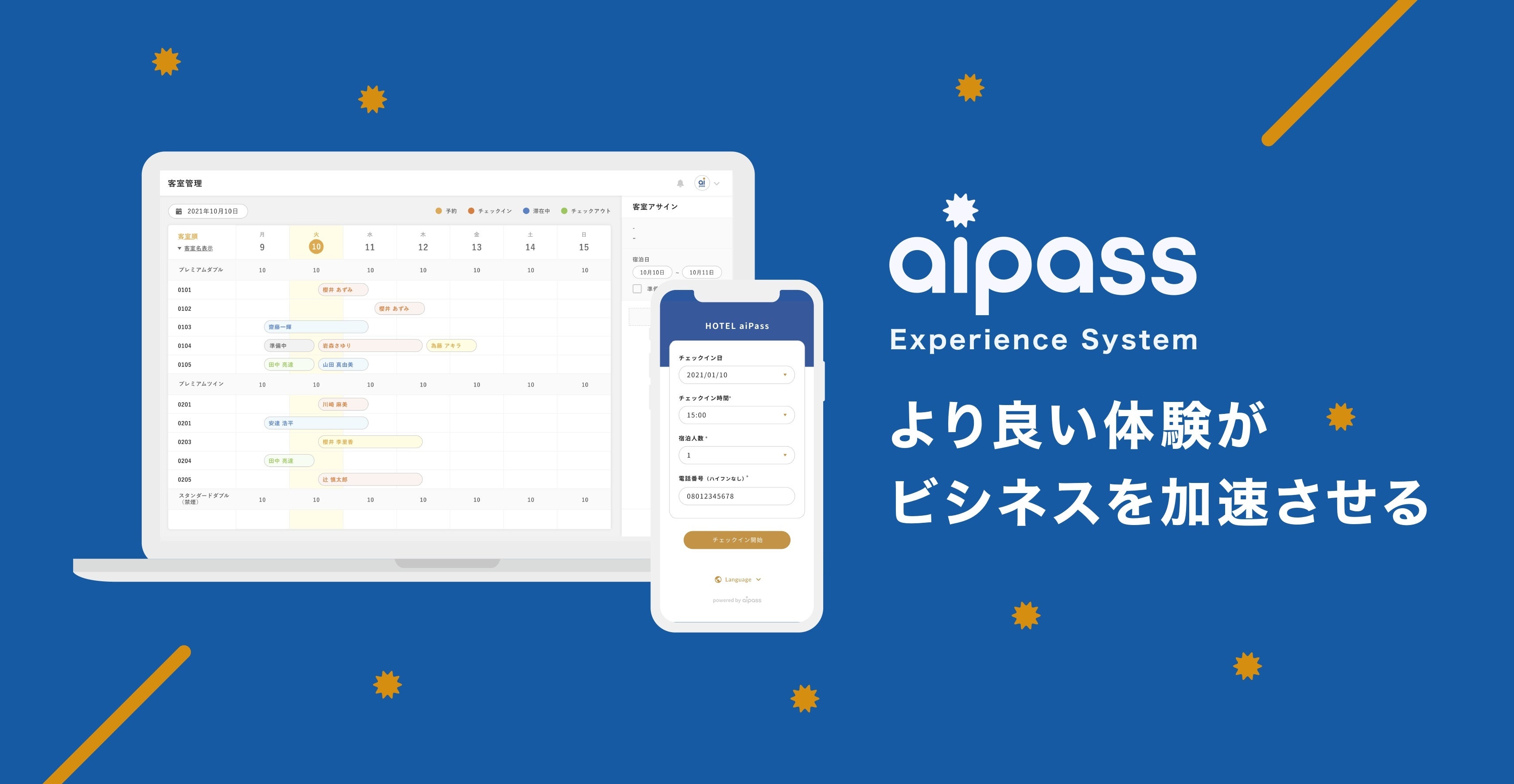 | サービス名 | Experience System 『aipass』 旧名称:HotelStyle OS『aiPass』 |