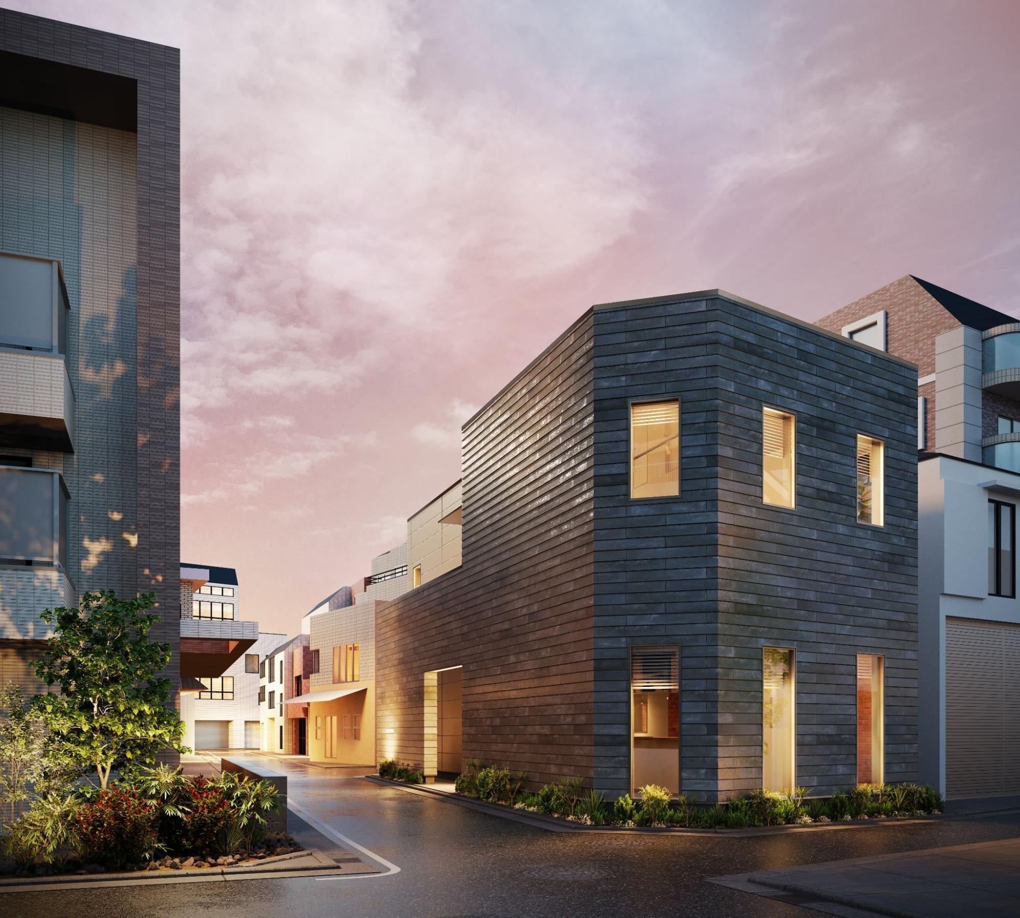 一般的に、建物は完成時がもっとも鮮やかと思われがちです。しかし「(仮称)コレタス経堂」は、セメントの質感をそのまま活かした環境配慮型の仕上げ材「SOLIDO」を使用することで、時間経過とともに自然に色褪せていく「情緒」も価値の一環となるようデザインされています。