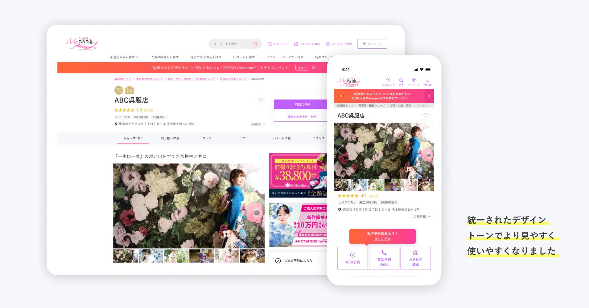プラン機能のリリースと合わせて、My振袖ではこの度店舗ページのデザインリニューアルを行いました。
