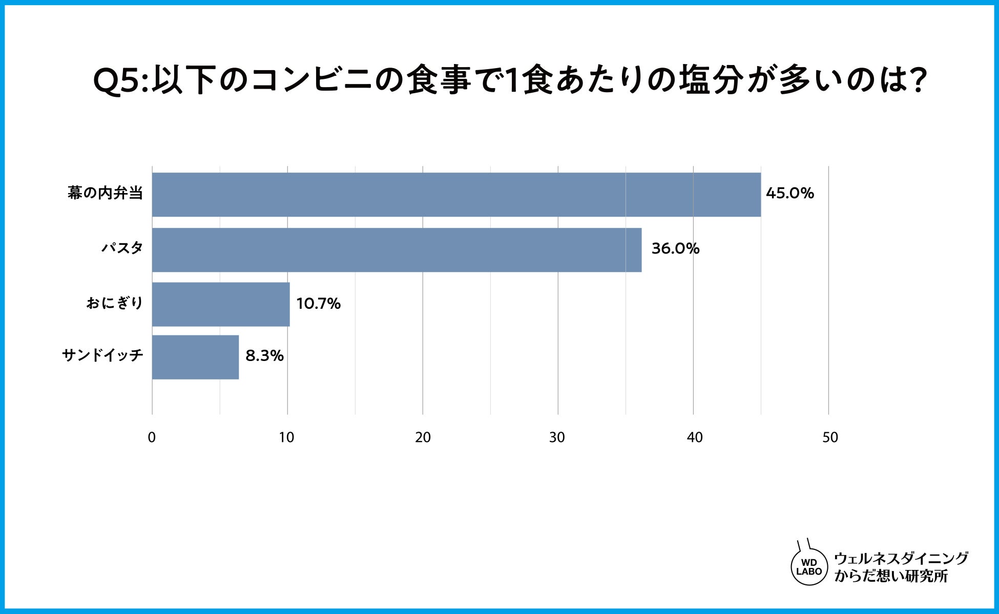 Q5: 以下のコンビニの食事で1食あたりの塩分が多いのは?