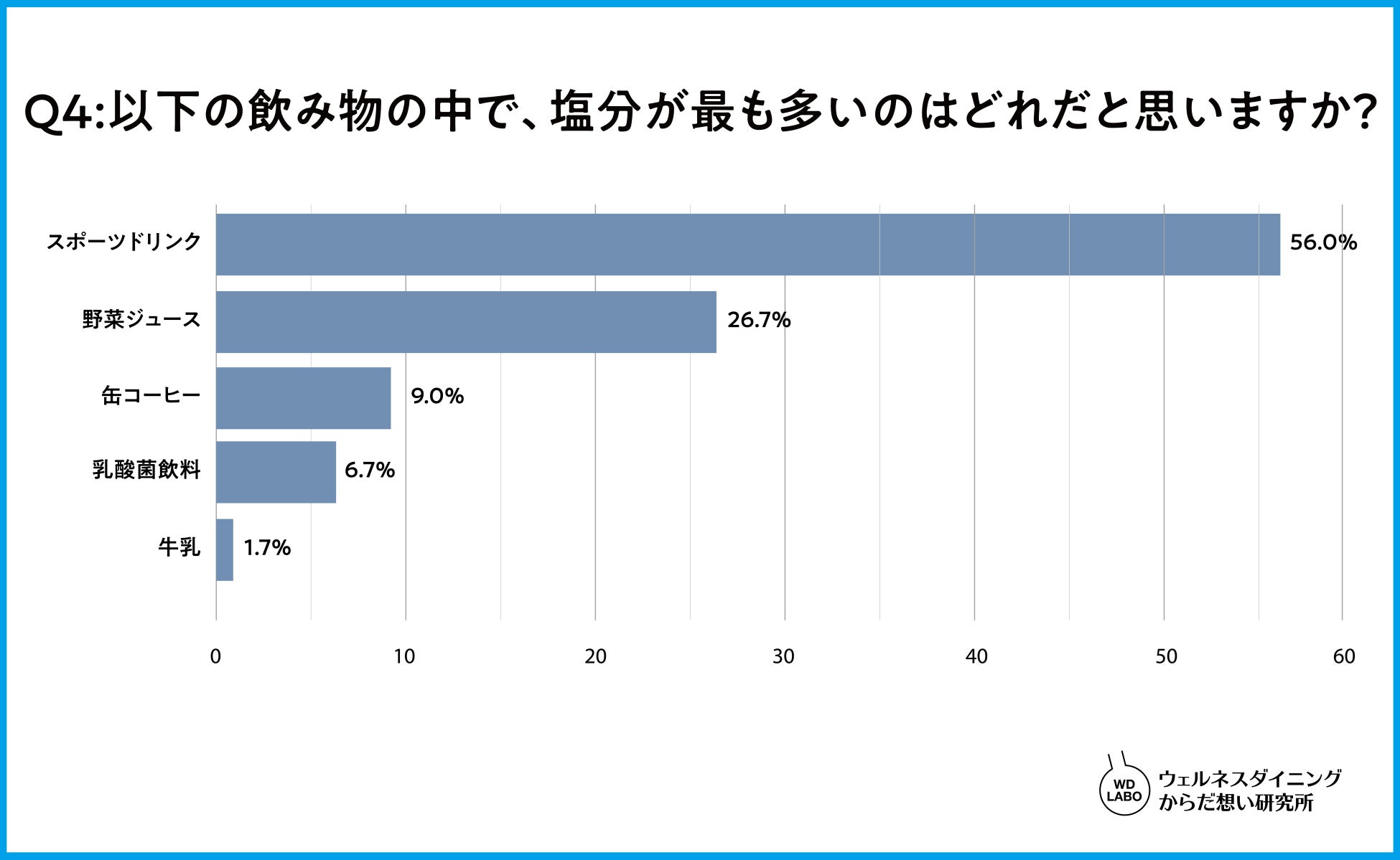 Q4:以下の飲み物の中で、塩分が最も多いのはどれだと思いますか?