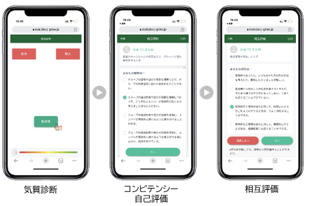 ①事前測定 : 気質診断、コンピテンシー自己評価、相互評価(3名分)