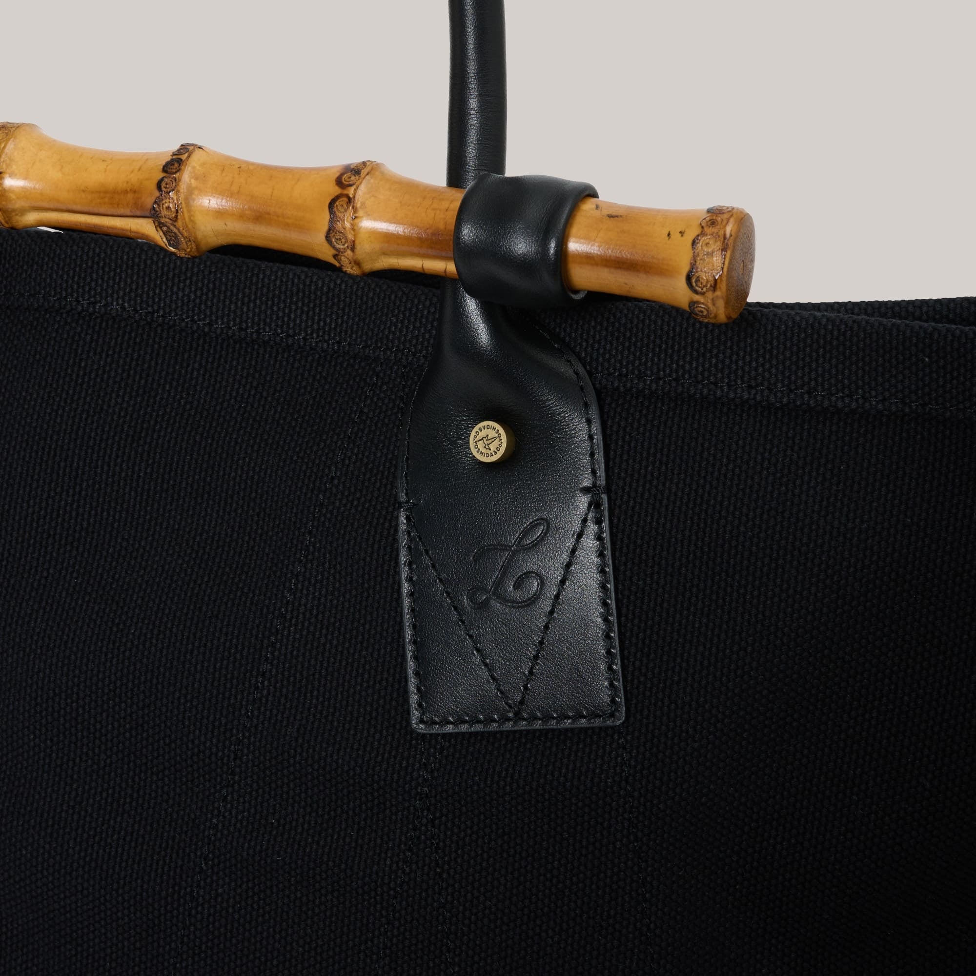 FILAMENTでは、1本のレザーと竹でハンドルを構成し、竹の下にレザーハンドルをくぐらせる事で、自重で鞄の間口が閉まるような仕組みに仕上げました。