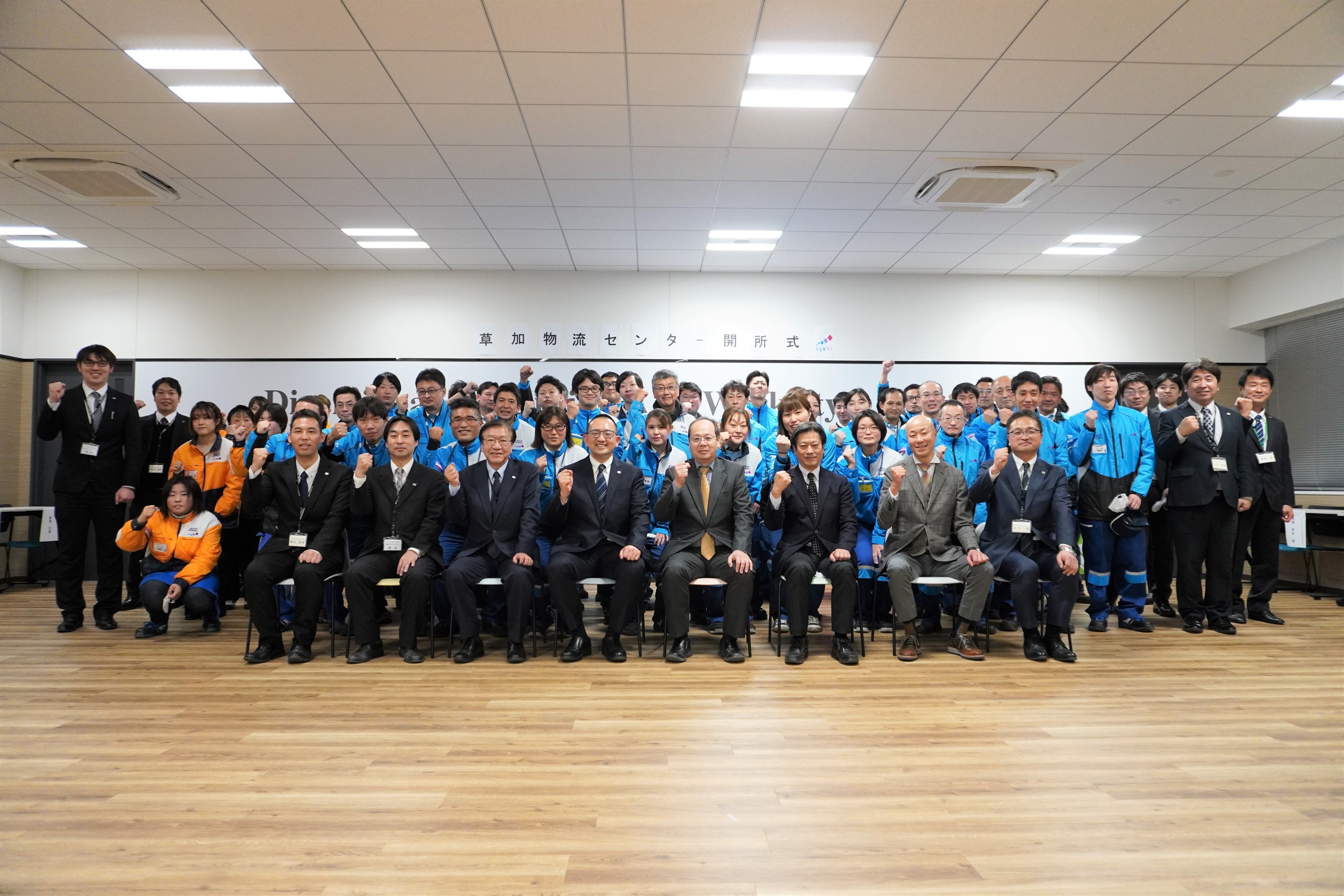 当日は、サービスドライバー、サービススタッフを含めた56名が出席しました。物流コストの削減と既存のチルド配送センターとの連携により、お客様への貢献はもちろん、安全で高品質な業務に取り組みます。